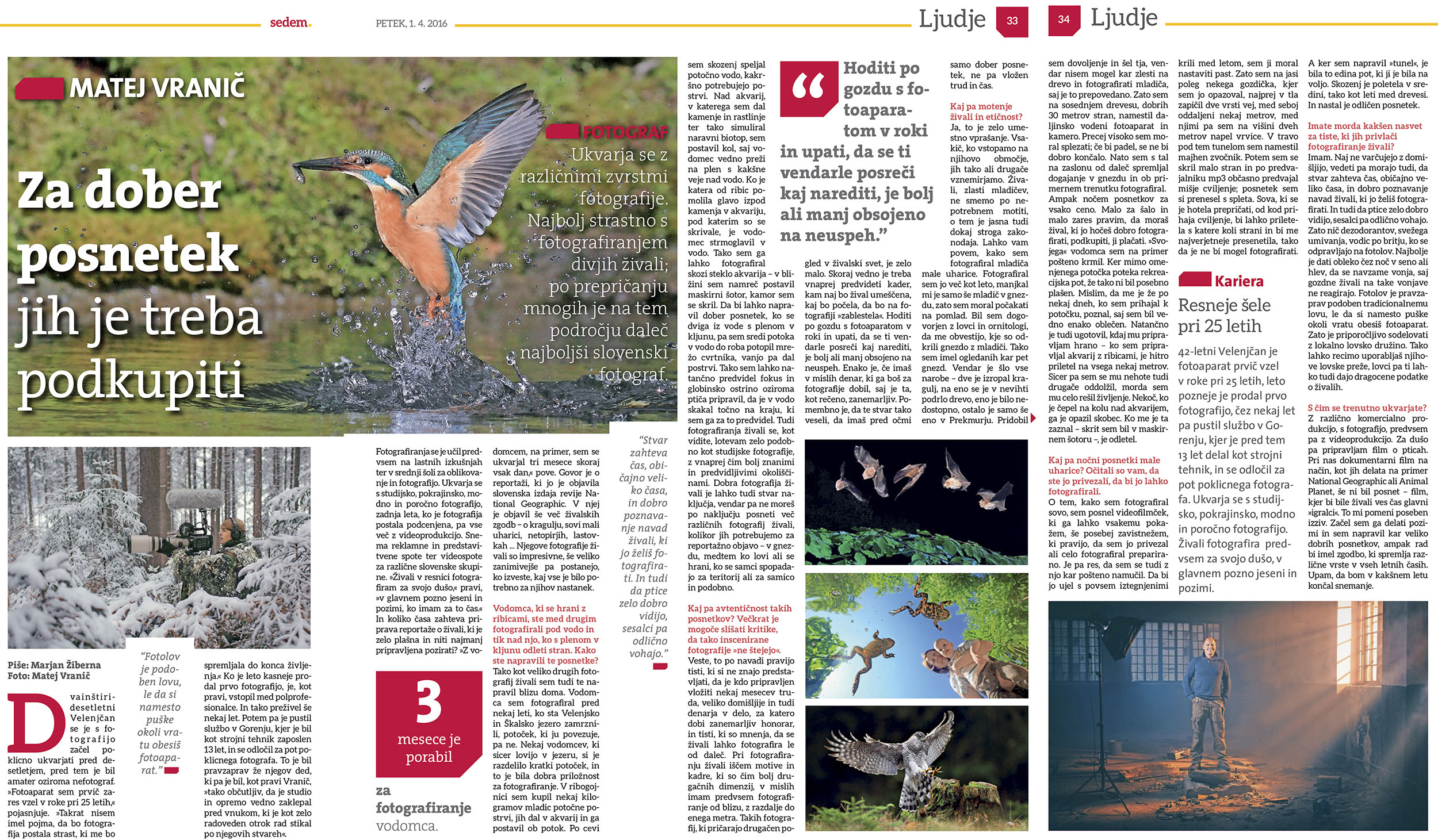 In the newspaper Sedem. is published an article about my career in wildlife photography. You can read how much effort, preparation, patience and ingenuity is necessary for a good wildlife photo. Those who want to try in the wildlife photography can also find an advice or two.