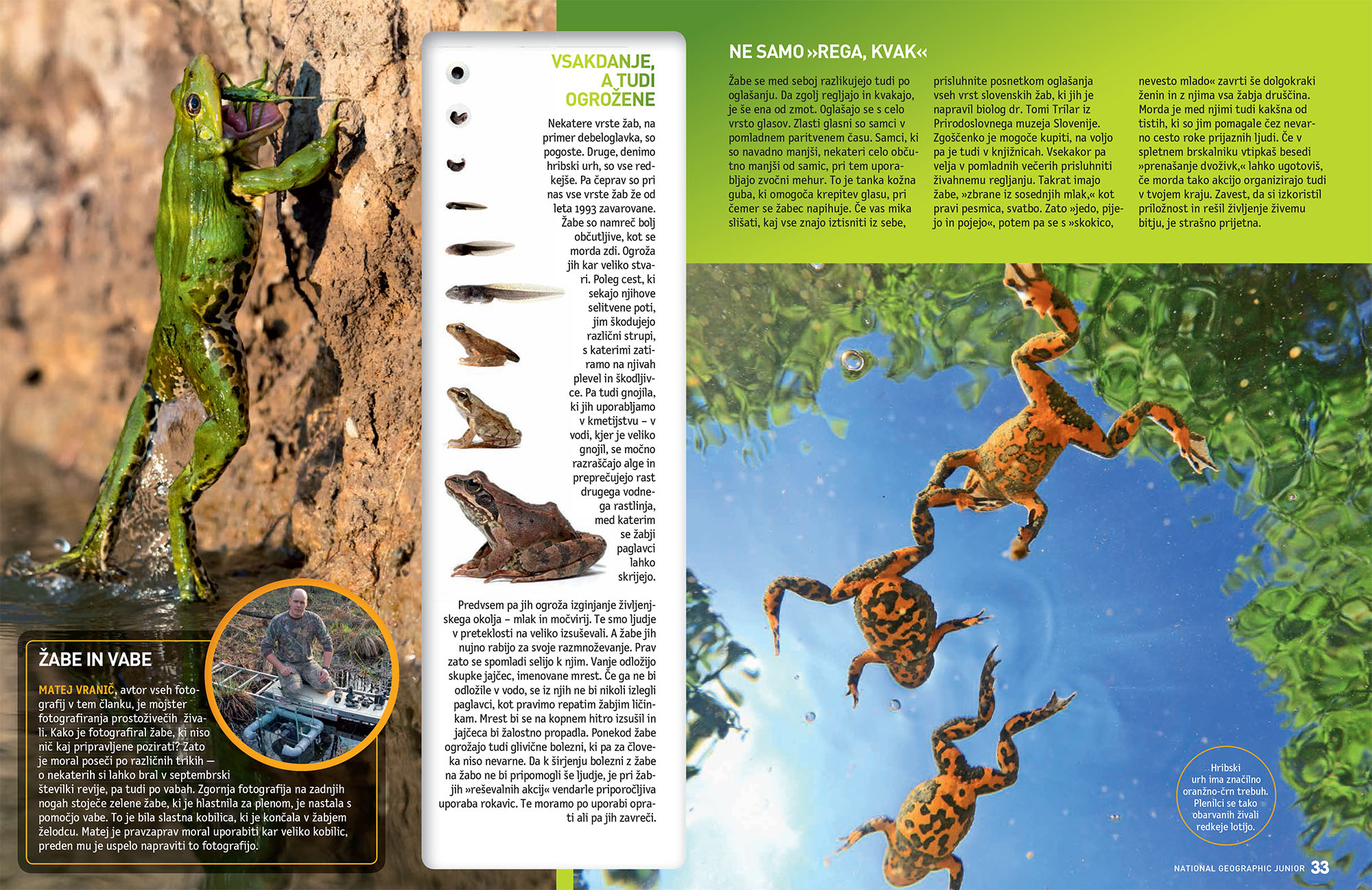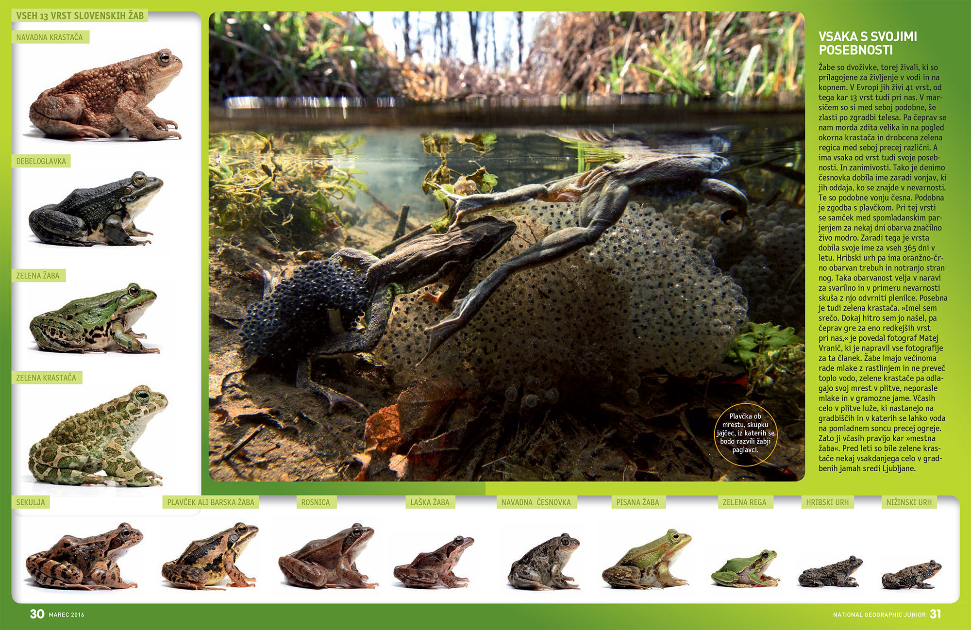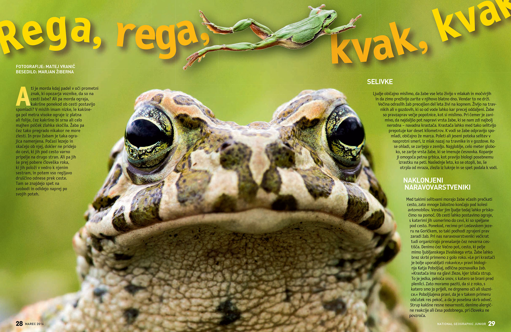 As every year, at the end of February and at the beginning of the March first frogs climb out and started to move to the water. Some of them can be away from the breeding site up to 2 km, so that means a long way there with a number of obstacles. More information about all Slovenian frogs you can find in reportage in March edition of National Geografic Junior magazine. Text written by Marjan Žiberna, Photographs by Matej Vranič.