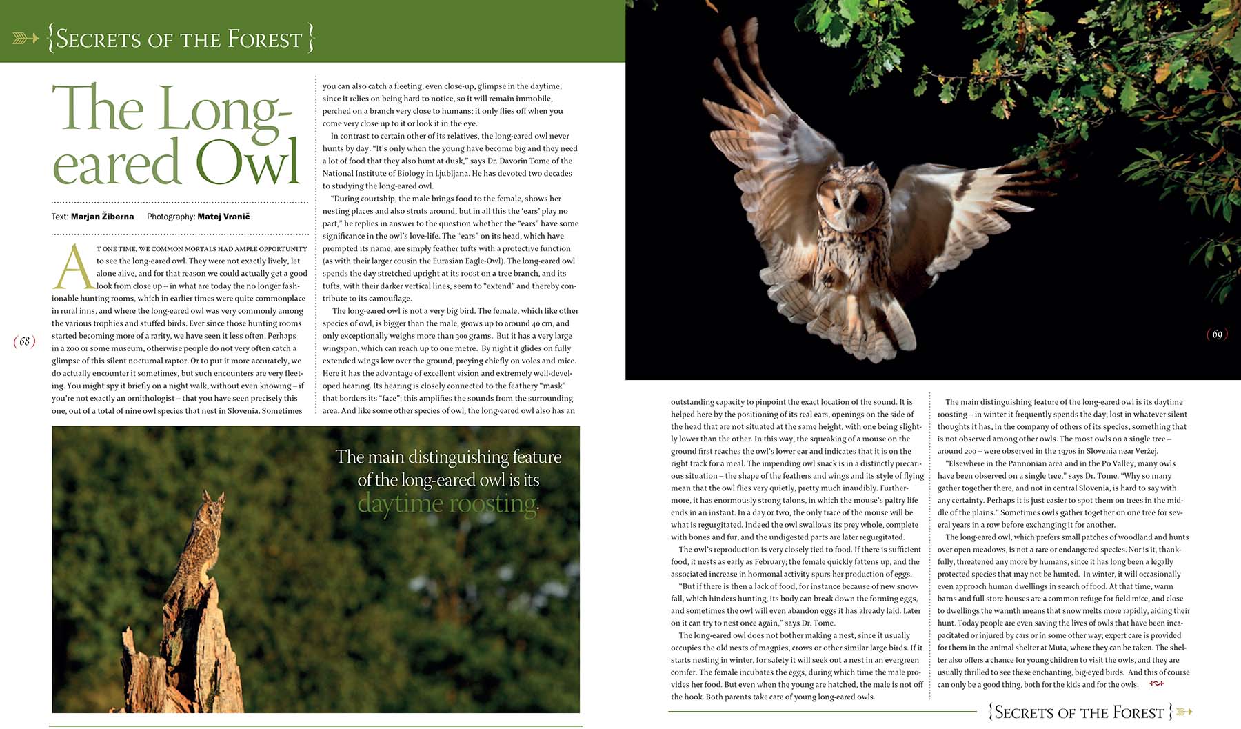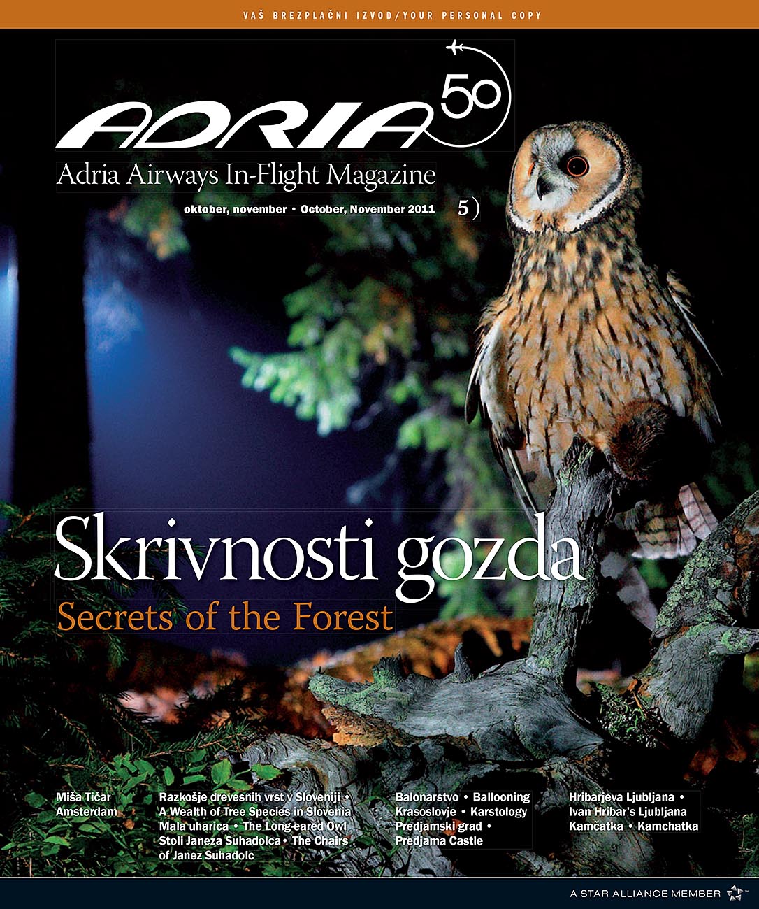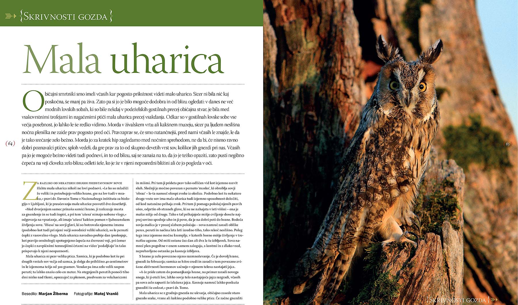 Zanimiva obširna reportaža o sovi mali uharici za revijo In-Flight Magazine, letalske družbe Adria.