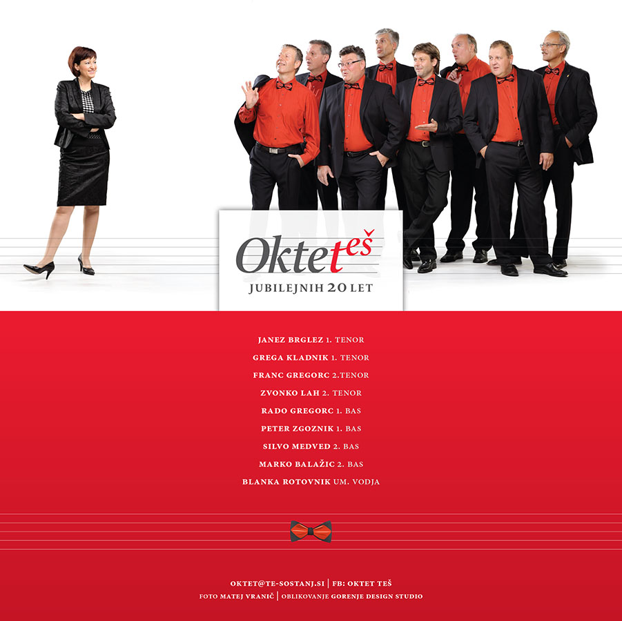 Oktet Teš, pod okriljem umetiške vodje Blanke Rotovnik  že vrsto let uspešno nastopa po Sloveniji in tudi izven naših meja. Zvesti člani okteta so že vrsto let Gregor Kladnik, Janez Brglez, Franc Gregorc, Zvonko Lah, Rado Gregorc, Peter Zgoznik, Silvo Medved in Marko Balažic. Tokrat so se fantje odločili, da ob jubilejnem koncertu 20 let delovanja pripravijo spektakularen koncert v Kulturnem domu Šoštanj. Fotogarije za vabila in plakat so zaupali meni, kot tudi režijo videospotov, ki smo jih tudi posneli za jubilejni koncert.